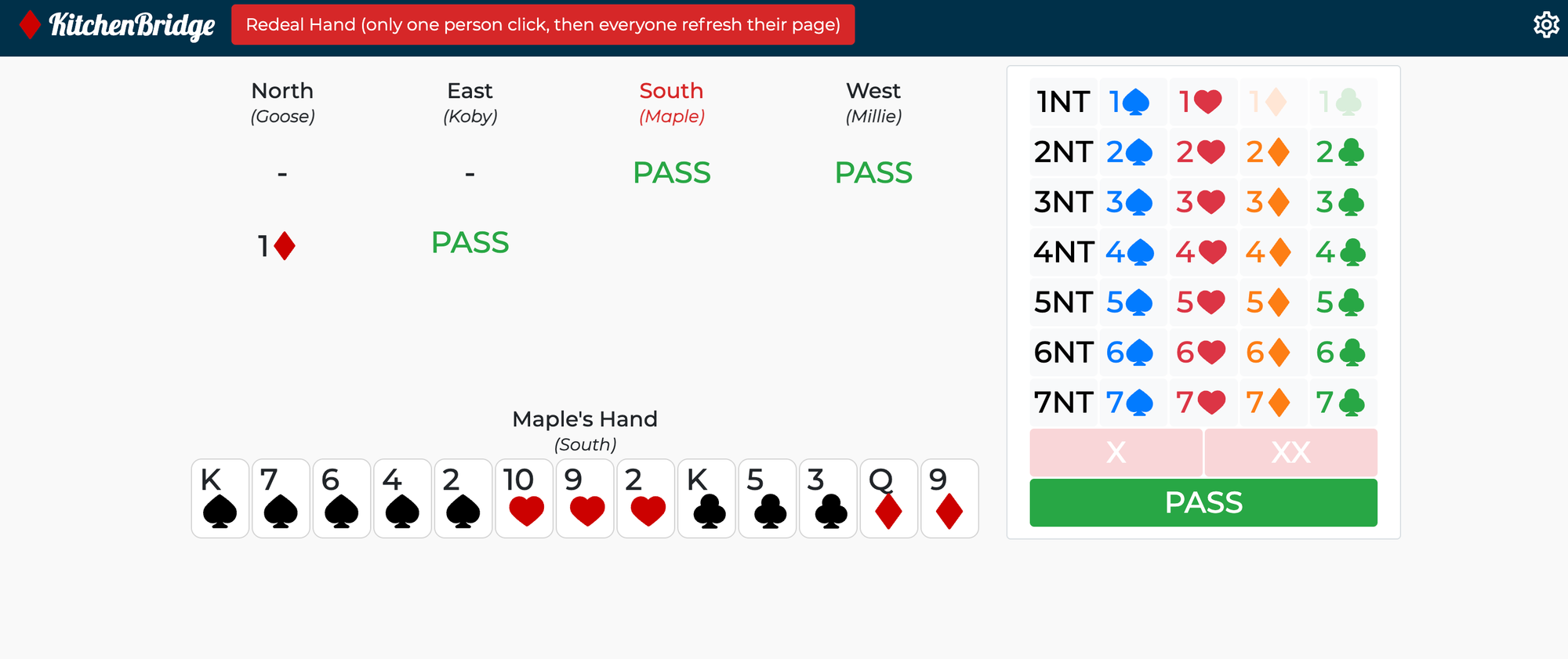 During the pandemic, I developed KitchenBridge as a way to continue playing bridge with family and friends.
