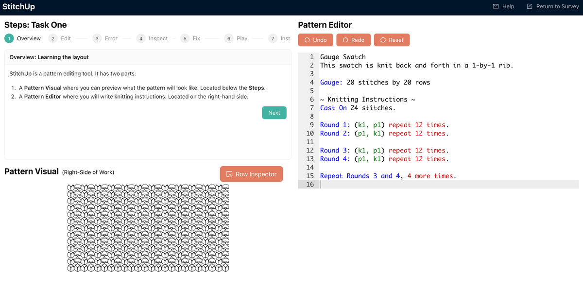 StitchUp is a live programming environment designed to help knitters tinker on their knitwear design patterns. It was created during my master’s degree at UBC in the Software Practices Lab with my amazing supervisor Reid Holmes.